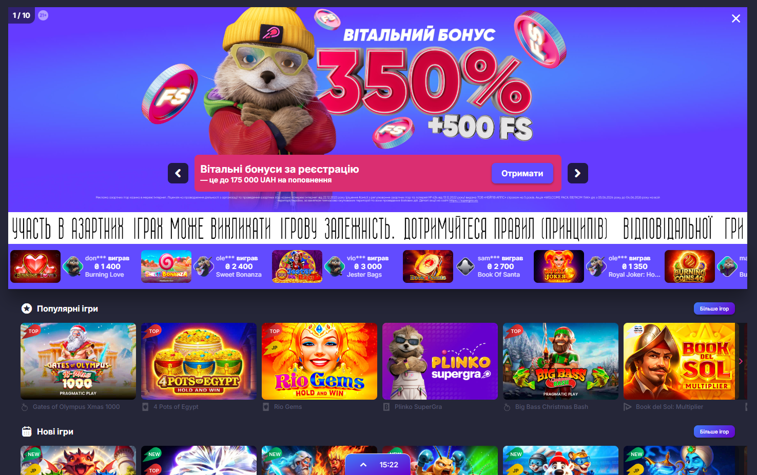 Максимальная ставка при отыгрыше - 60-100 грн. Если вы превысите, бонус может быть аннулирован. Активация бонуса должна произойти в течение 7 дней после регистрации. Фриспины на Big Heist не требуют отыгрыша и идут чистой прибылью. Турнир дня предлагает 15,000 фриспинов в виде призового фонда - участвуют автоматически при игре на реальные деньги.